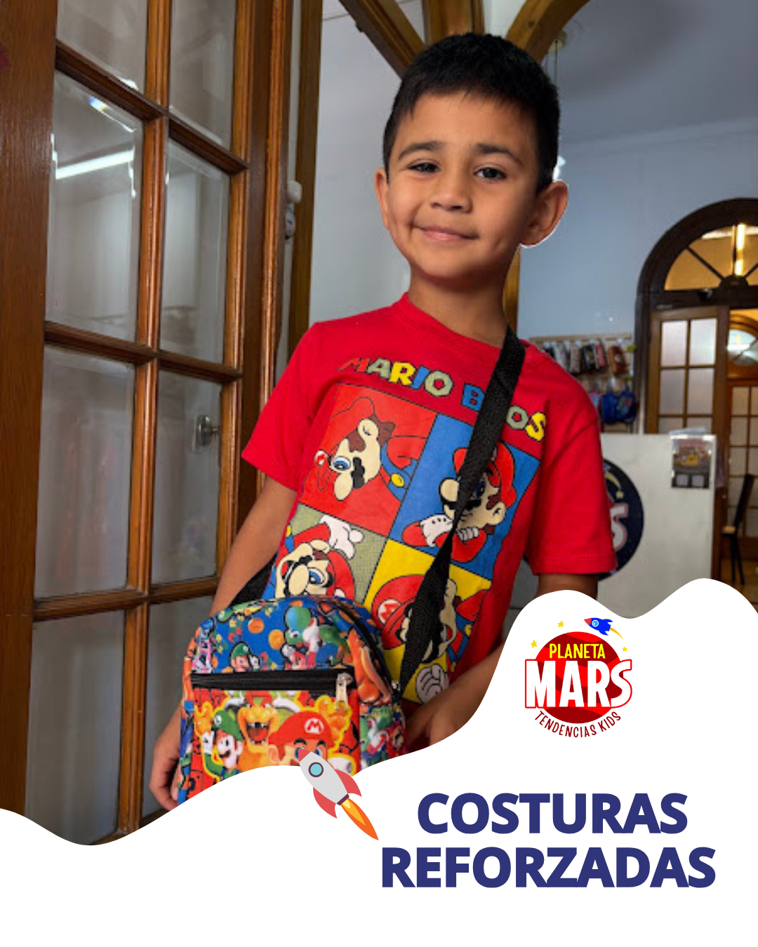 Este morral es súper liviano, con el diseño de Mario Bros que le da ese toque gamer que los peques aman, ideal para llevar juguetes, útiles o tesoros importantes de cada misión del día.