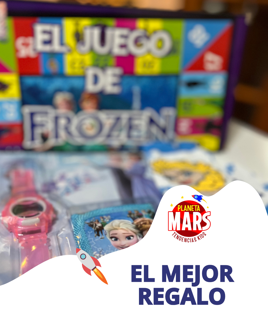 Reloj con correa de 21cm de largo, perfecto para saber cuándo empieza la próxima aventura congelada. Billetera brillante y encantadora, con diseño de Frozen, de 13cm de largo x 7cm de alto cerrada, ideal para guardar billetes, monedas...¡y un porquito de magia!