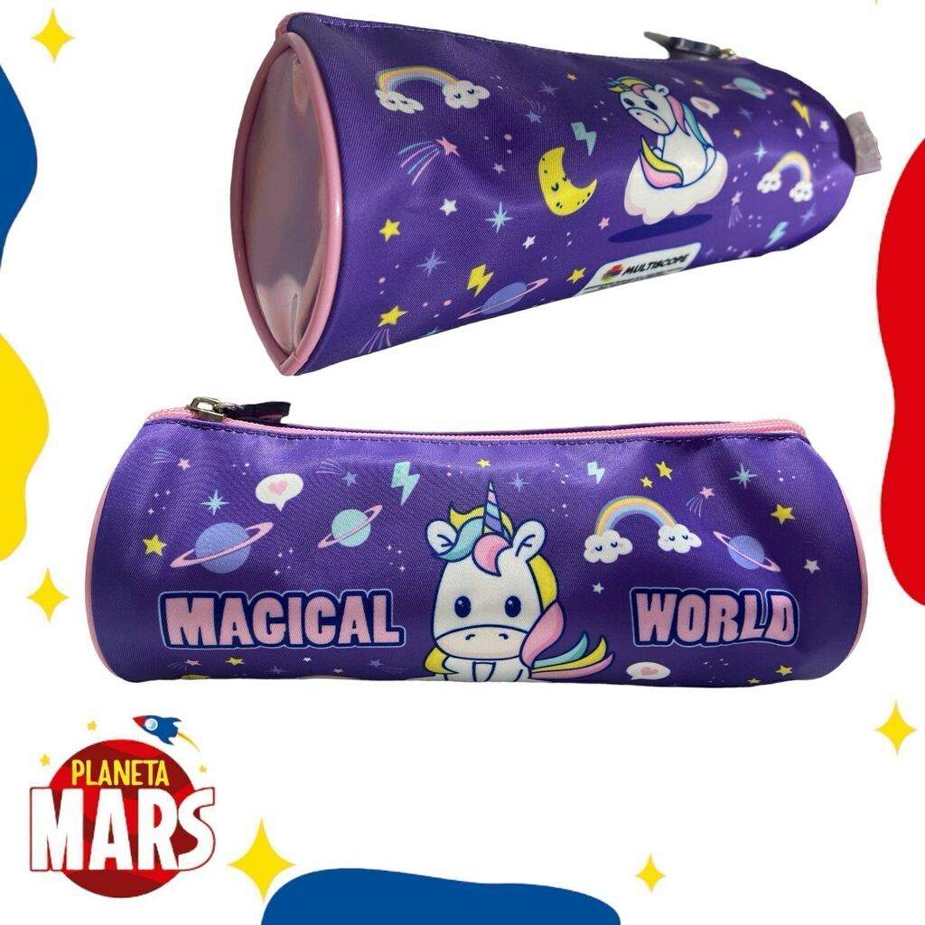 Cartuchera tubo de licencia. Detalle de goma en el cierre. Medida 21cm de largo x 7 cm de alto.