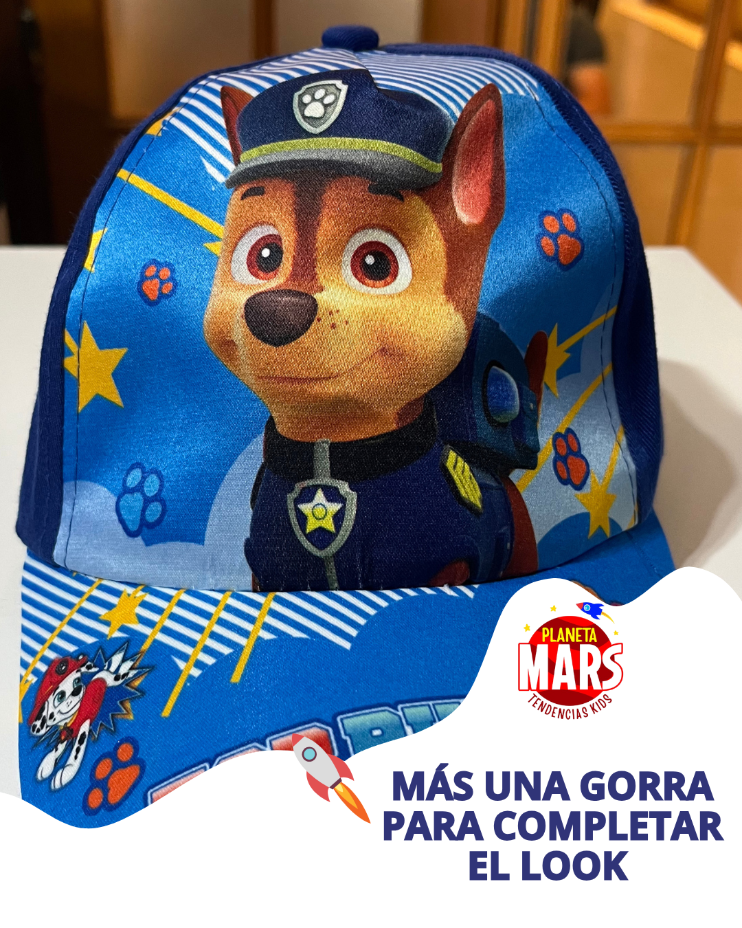 Te traemos este combo para darle un super look a tu día a día. Incluye camiseta, short y una gorra que completa el outfit con toda la onda de tu personaje favorito de Paw Patrol.