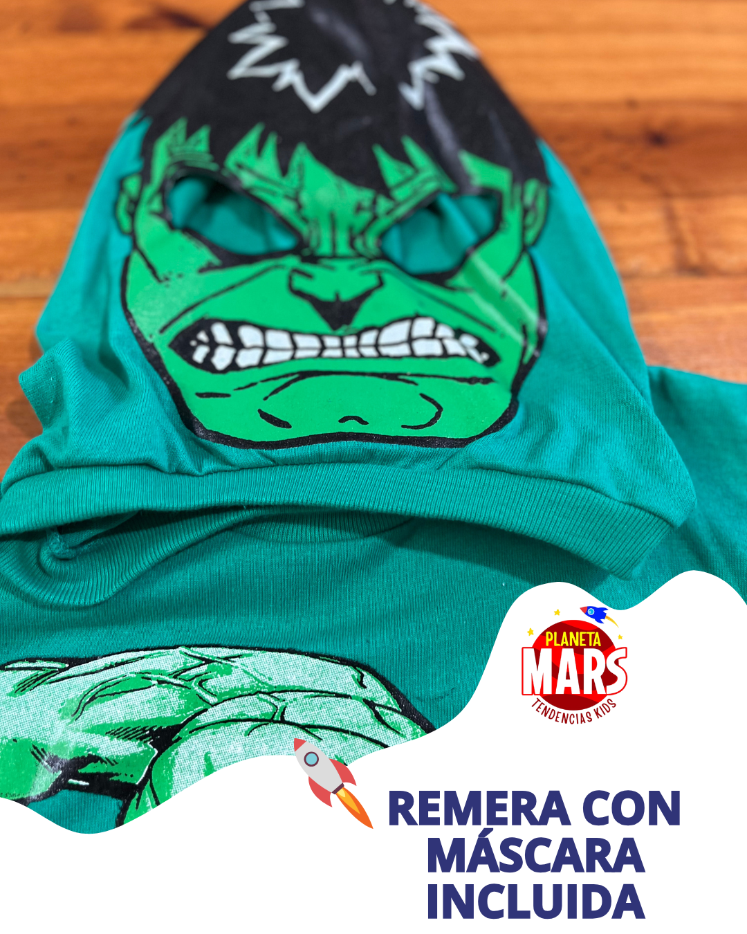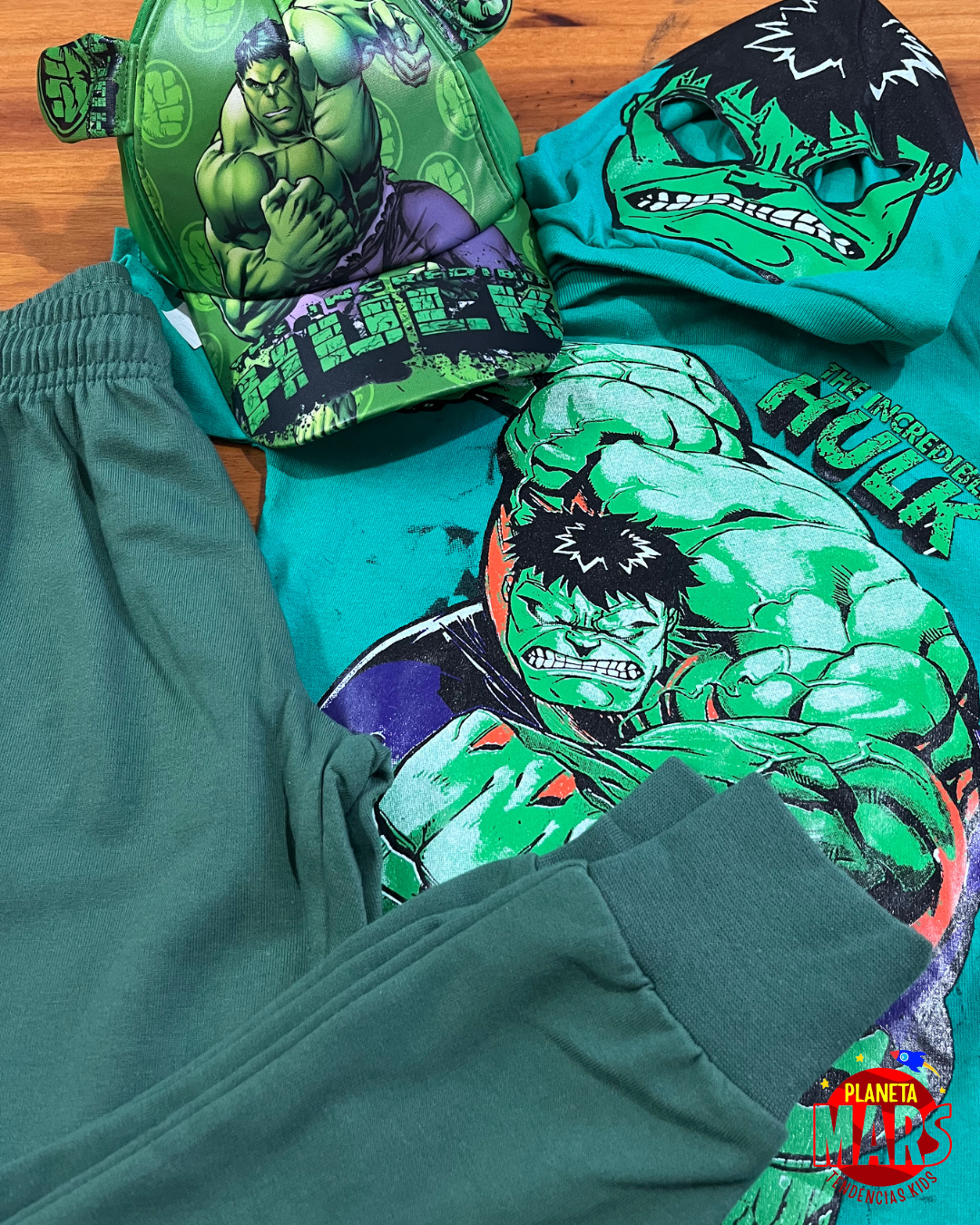 Con este super combo de Hulk, la fuerza y la diversión van de la mano: remera resistente, babucha cómoda para la acción, máscara rígida para jugar a ser un verdadero héroe y máscara de tela para el día a día. ¡Un look que se transforma en pura aventura!