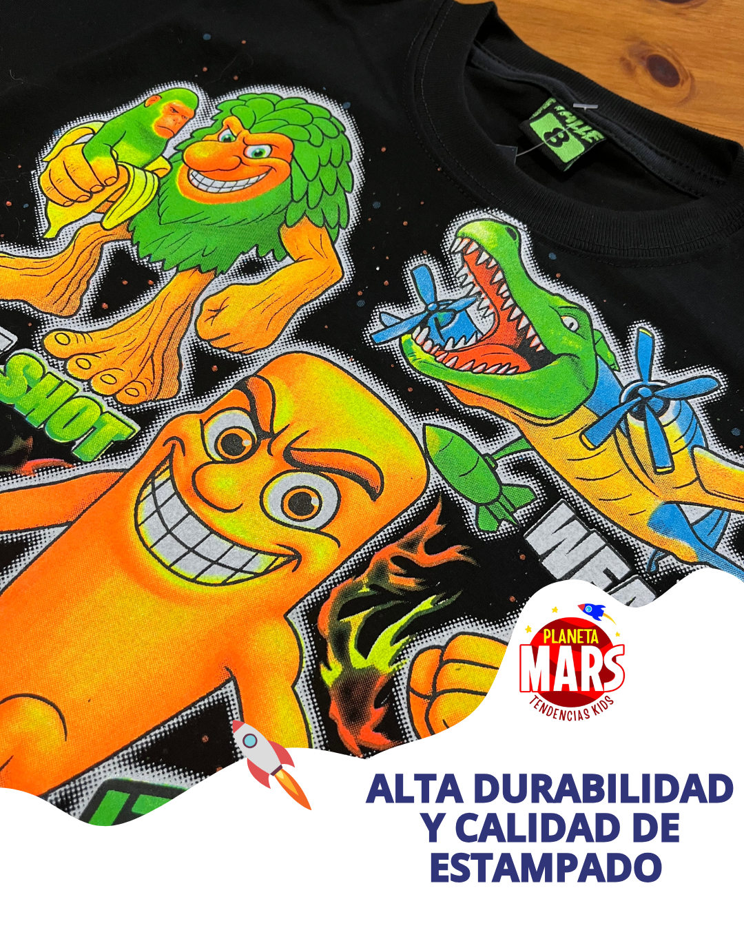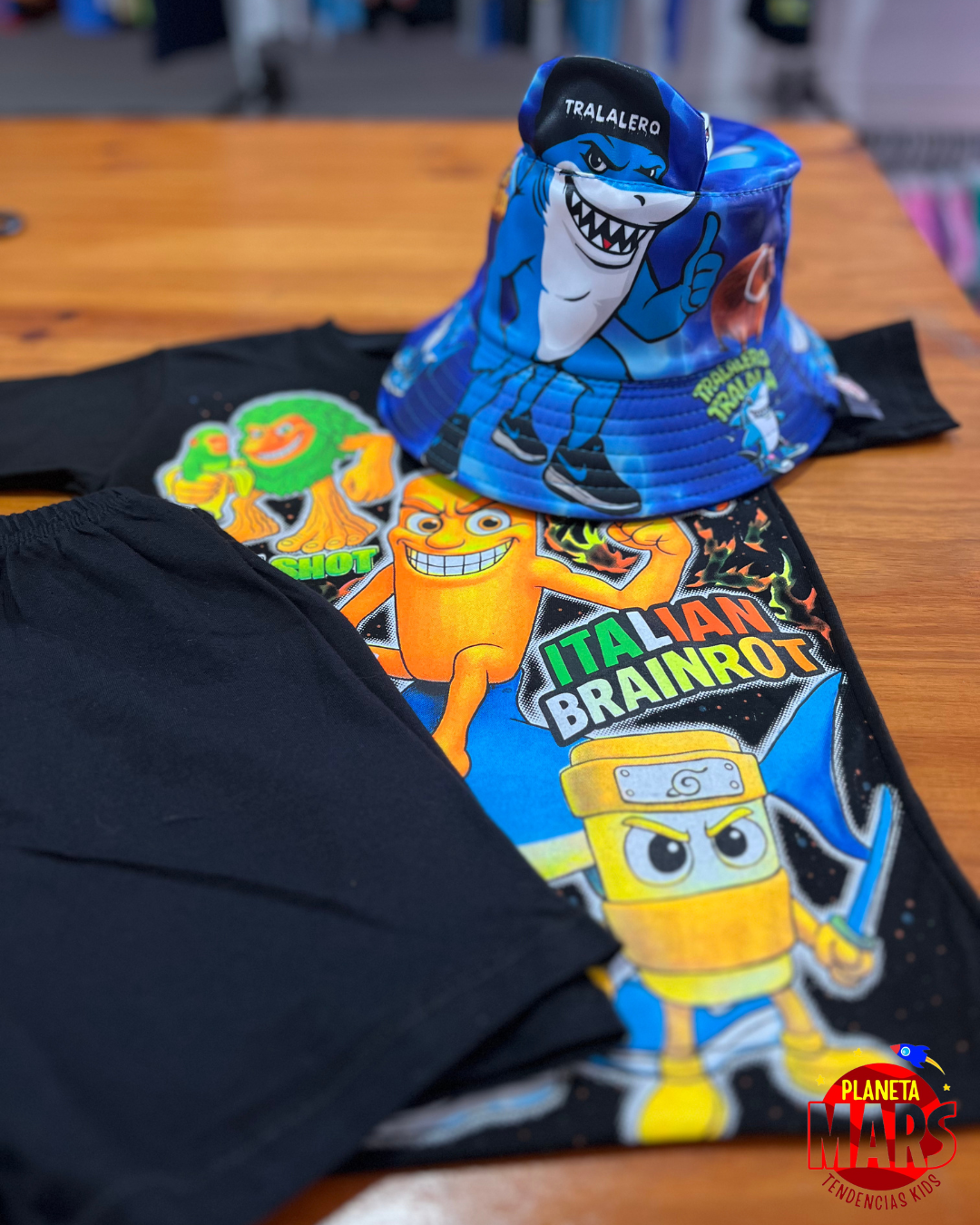 Esta remera de Italian Brainrot es ideal para que tu peque juegue, se divierta y lleve el chiste a donde vaya. Y cuando se apagan las luces ¡El diseño brilla en la oscuridad!