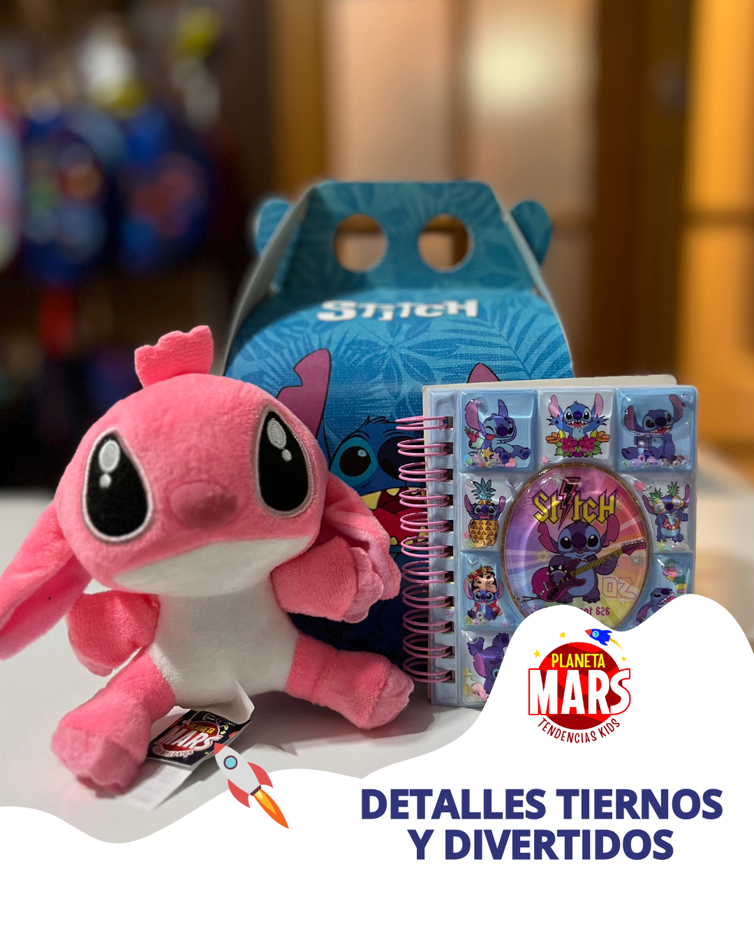 ¡El experimento más adorable del Universo llegó para hacer que tus sorpresas sean inolidables! Esta cajita feliz de Stitch, es perfecta para cumpleaños, regalitos o cualquier ocasión es la que quieras sumar colo, diversión y un poquito de locura alienígiena.