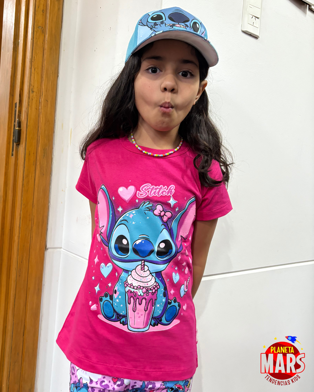 Con este super combo de Stitch tu peque va a estar listo para todas las travesuras: remera cómoda y fresca, short ideal para jugar sin parar y gorra con todo el estilo hawaiano. ¡Diversión asegurada con el amigo más tierno y travieso!