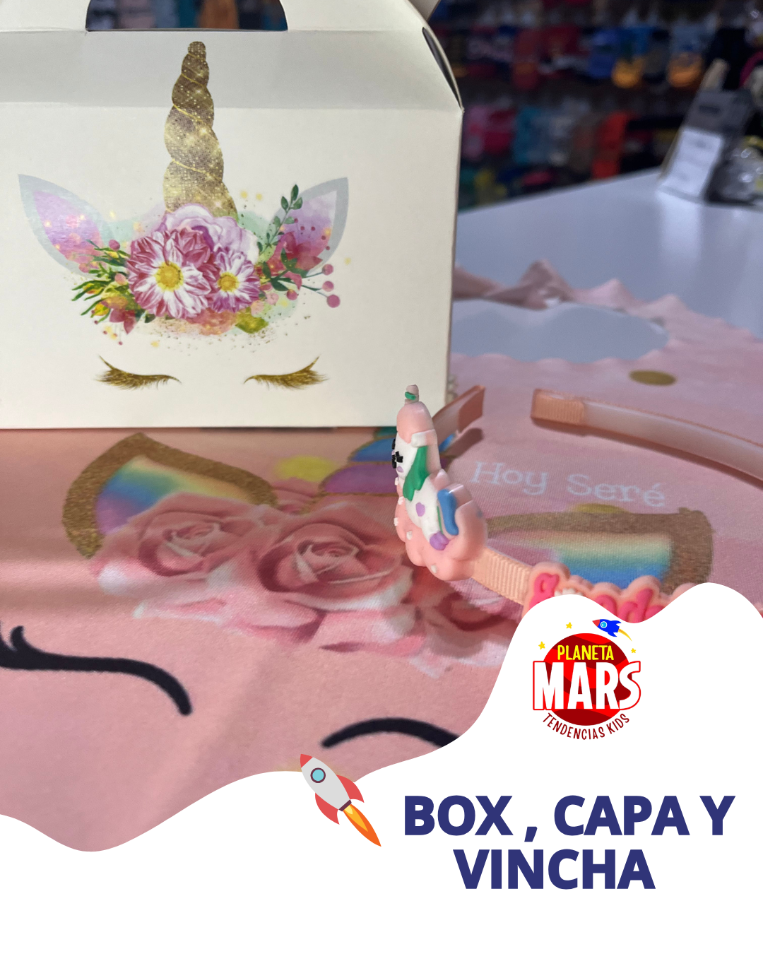 ¡Directo desde un mundo de arcoíris y sueños llega esta cajita feliz de unicornio para llenar tus eventos de color y alegría! Ideal para cumpleaños, regalitos o cualquier ocasión que necesite un toque de fantasía.