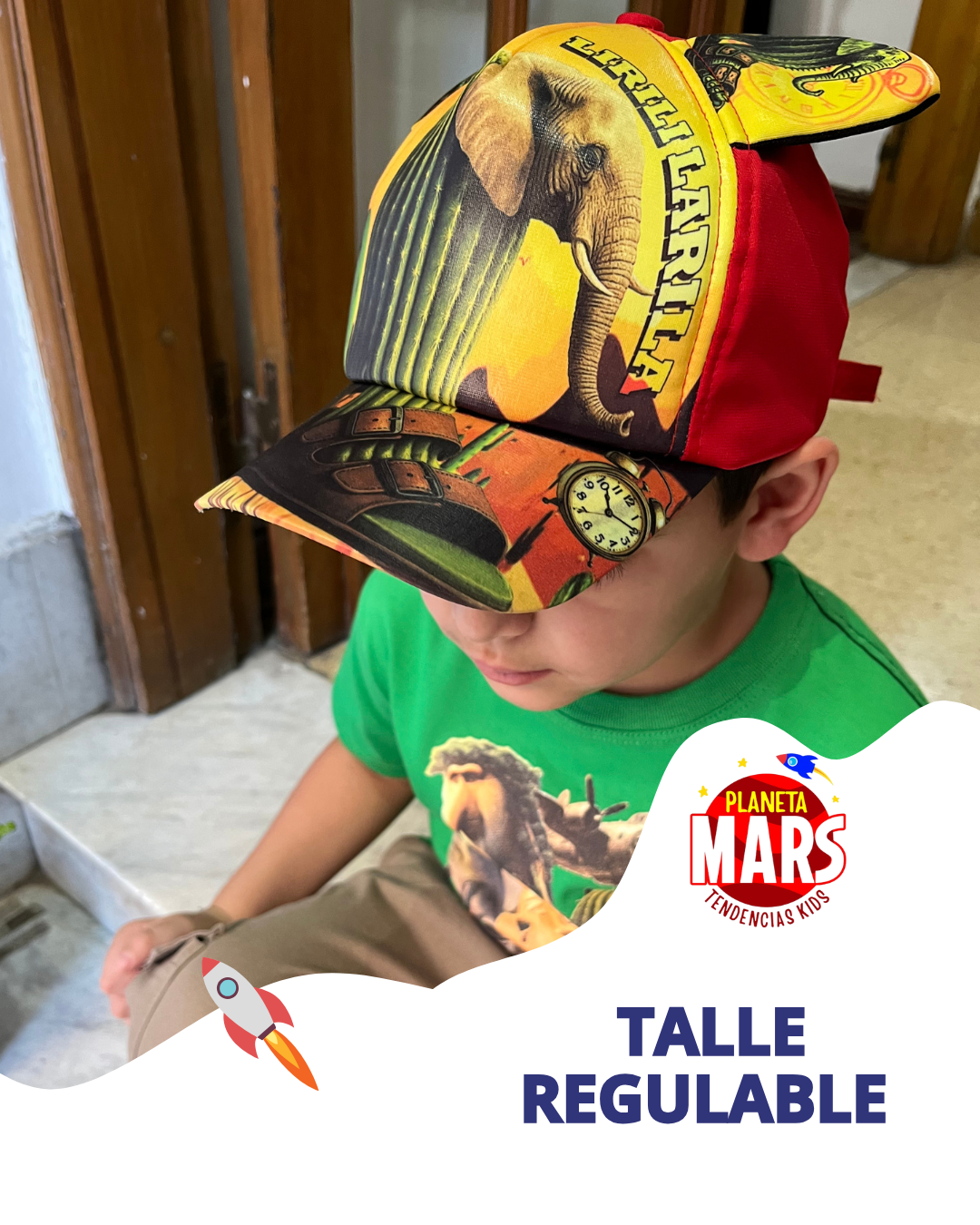 Se adapta fácilmente a distintas edades y tamaños de cabeza, garantizando un calce cómodo y seguro. Gorra sublimada, regulabre para peques de 2 a 6 años, con 53cm de circunferencia aprox.