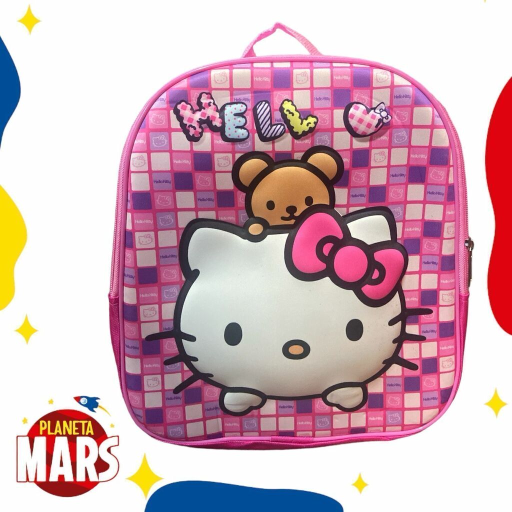 Mochila para jardín con 2 compartimientos y estampa 3D súper adorable de Kitty, ideal para las peques que aman los detalles delicados, los moñitos y la diversión.