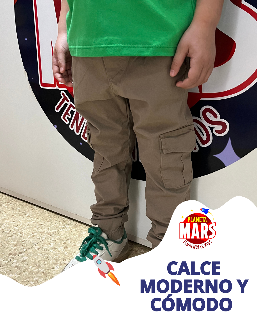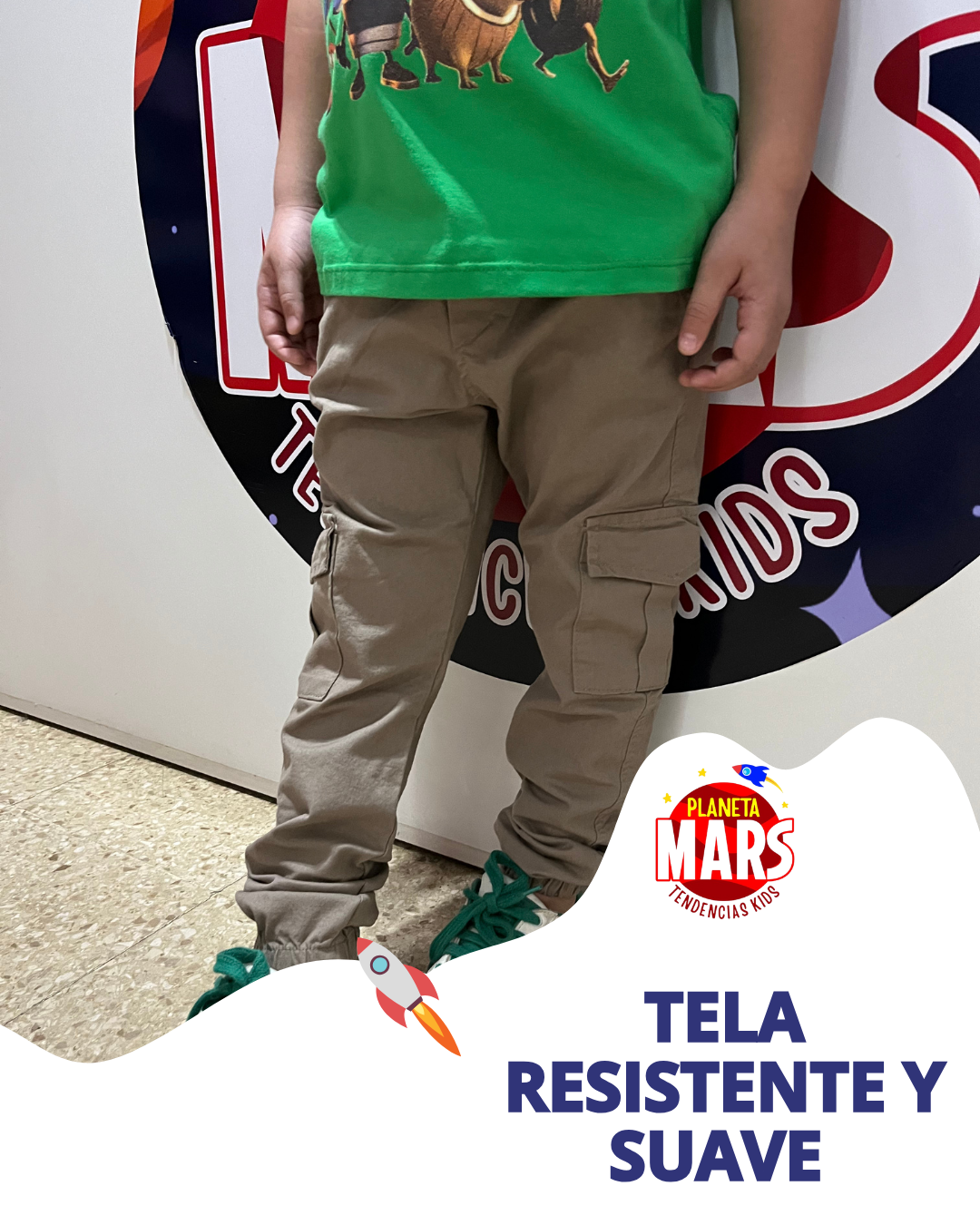 Confeccionado en gabardina de excelente calidad, ofrece una textura firme pero cómoda, ideal para acompañar el movimiento de los chicos sin limitar la comodidad.