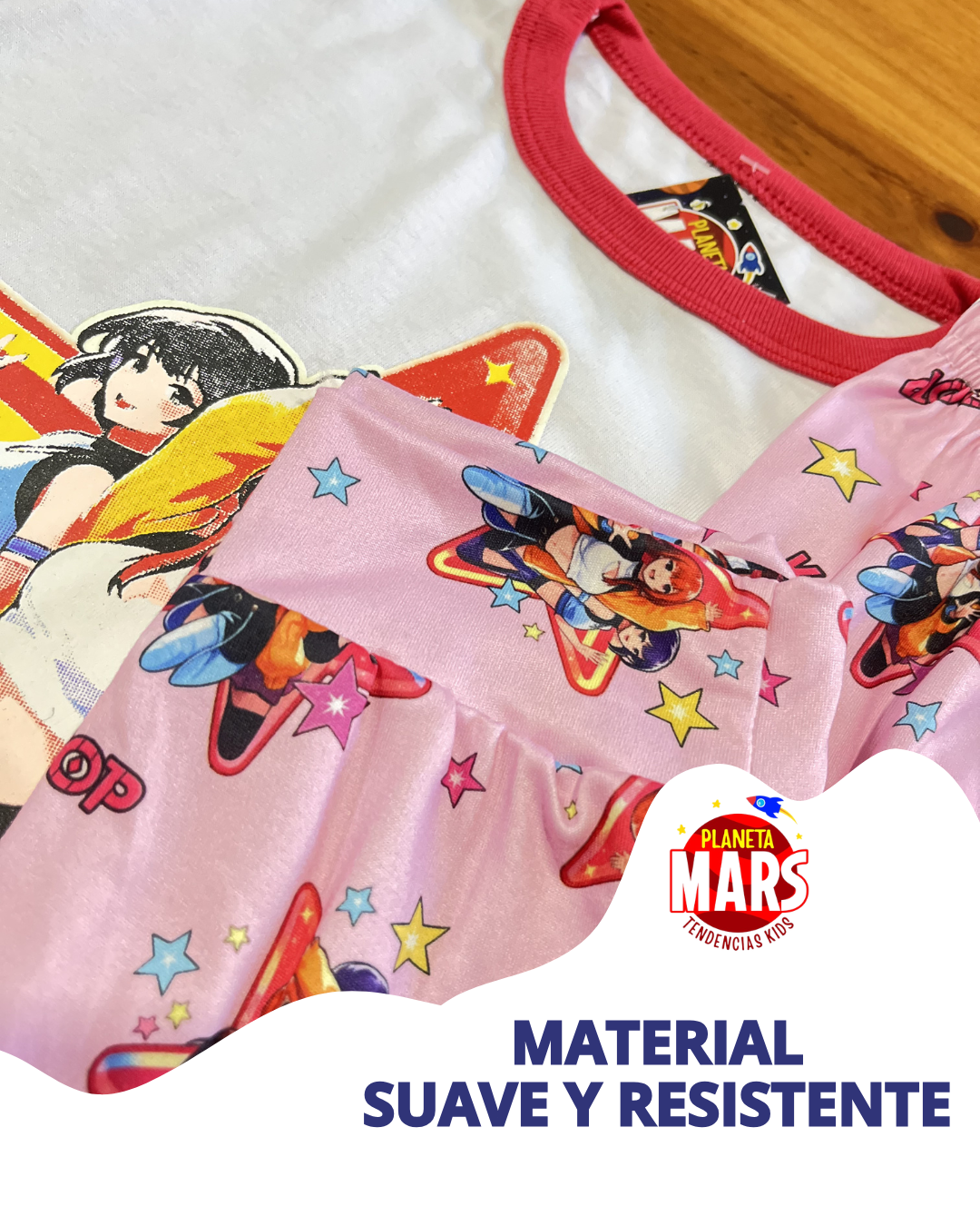 Este pijama de algodón con estampa que brilla en la oscuridad es perfecto para quienes aman la música, el baile y el brillo de las estrellas. Con un diseño cómodo y canchero, es ideal para descansar después de un día a puro ritmo. Y cuando la luz se apaga... ¡la estampa cobra vida y brilla, como un verdadero show nocturno! Ideal para pequeñas fans que sueñan con escenarios, coreos y mucha actitud.