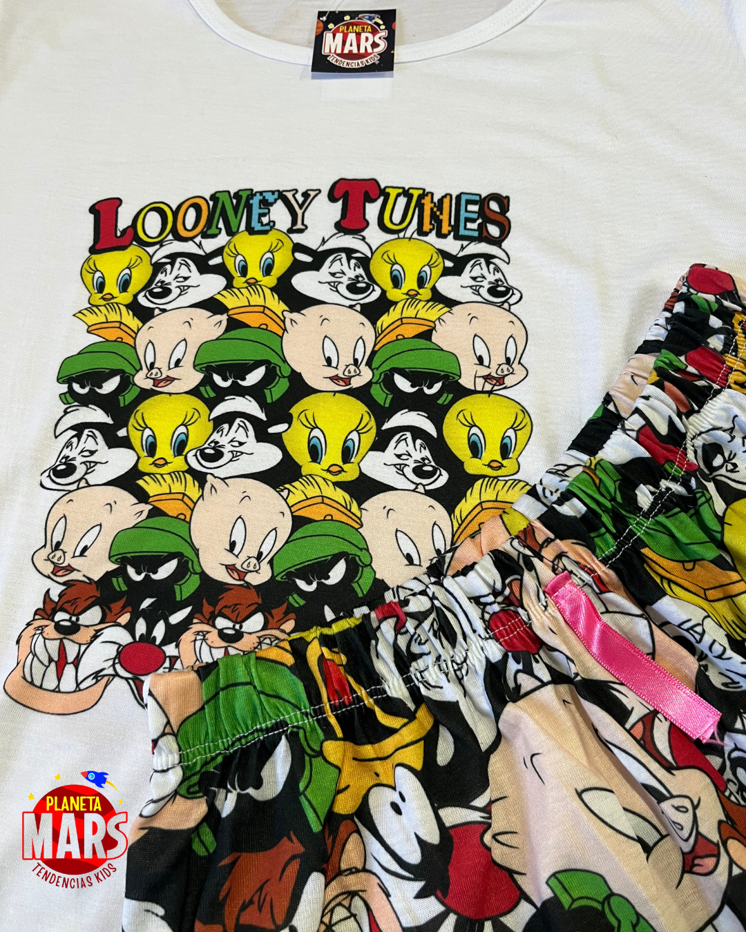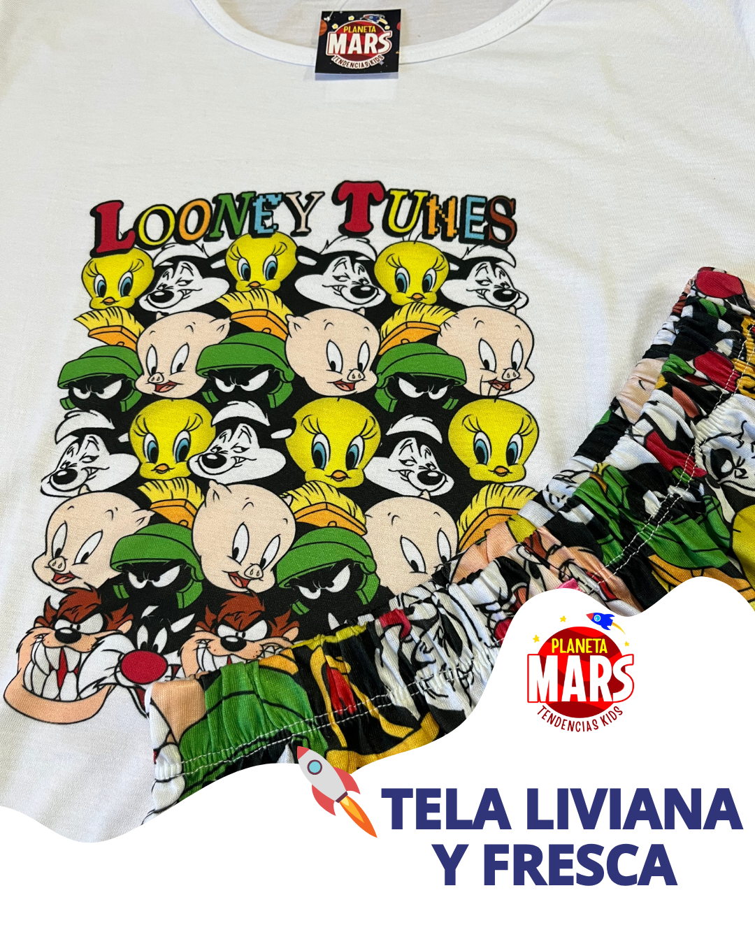 Un pijama que te hace volver a esas mañanas de dibujitos, cuando los Looney Tunes te hacían reír sin esfuerzo. Ahora, con toda la comodidad que querés y ese toque de infancia que nunca se va del todo.Descansá de la mejor manera con nuestro pijamas de verano, confeccionados en tela liviana y fresca, perfecto para descansar sin calor y con total libertad de movimiento.