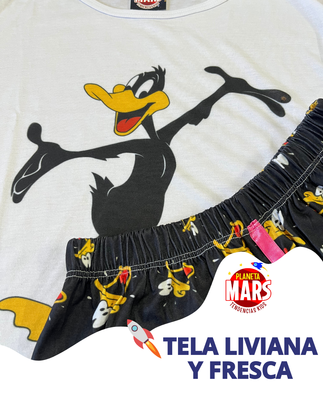 Para los que crecieron viendo al Pato Lucas y todavía disfrutan su humor inigualable. Cómodo, divertido y con ese toque de infancia que sigue presente. Descansá de la mejor manera con nuestro pijamas de verano, confeccionados en tela liviana y fresca, perfecto para descansar sin calor y con total libertad de movimiento.