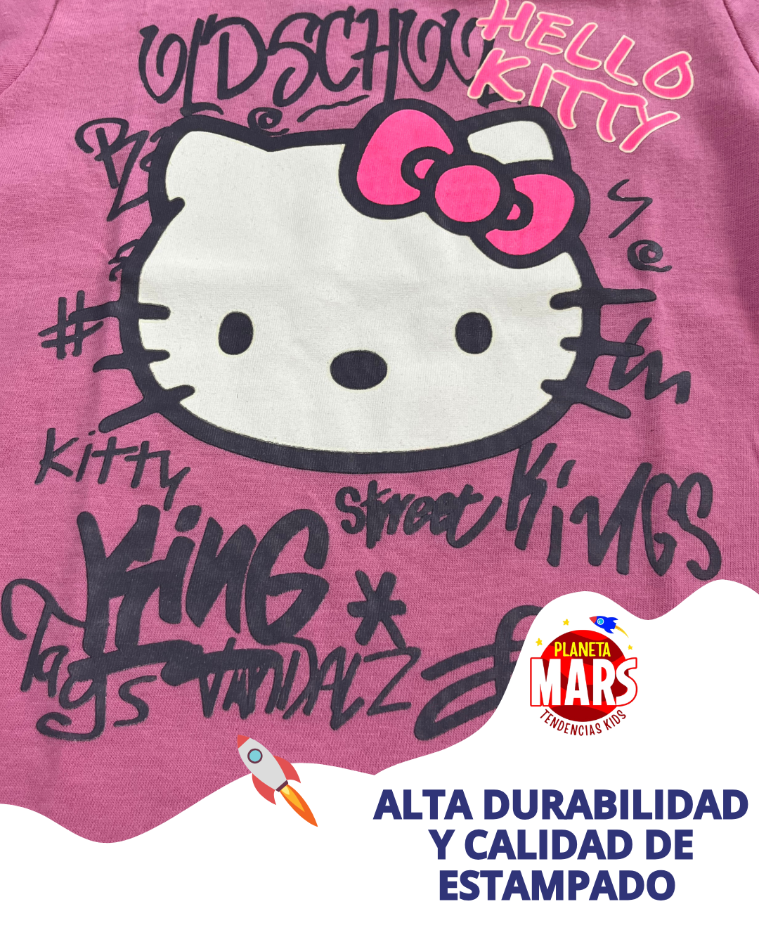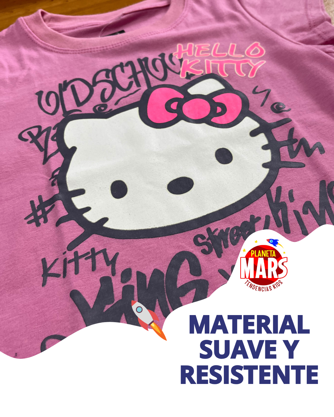 Con esta remera, tu peque llevará a Hello Kitty a todas partes, ¡incluso cuando se apagan las luces! Súper cómoda, y con un diseño adorable que brilla en la oscuridad, es perfecta para jugar, soñar y brillar con mucha ternura.