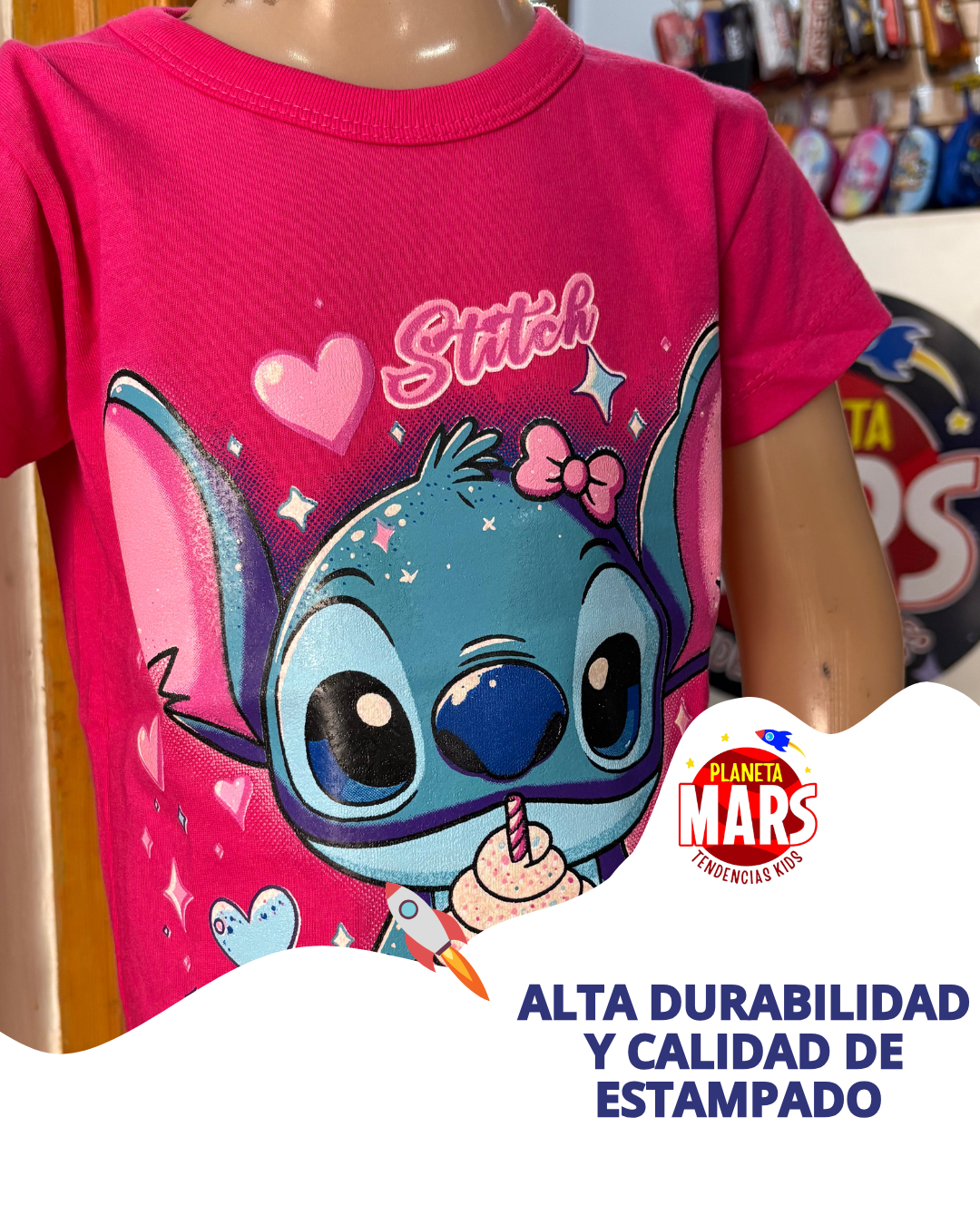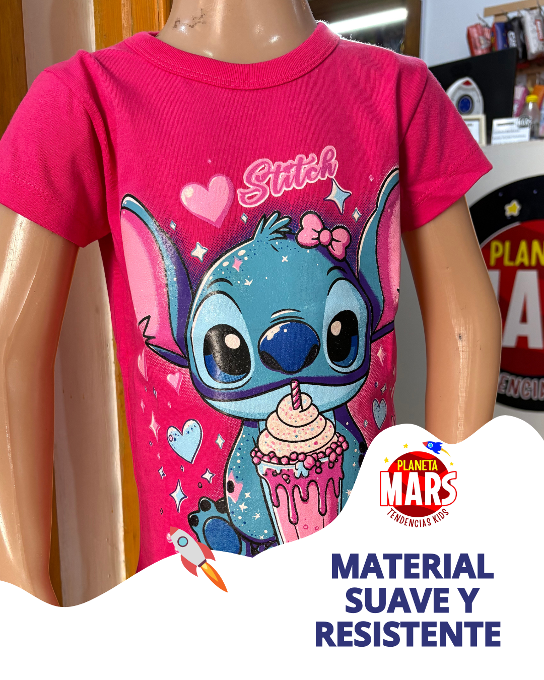 Con esta remera, tu peque llevará a Stitch listo para cualquier travesura... ¡incluso cuando se apagan las luces! Súper cómoda y con un diseño que brilla en la oscuridad, es perfecta para jugar, soñar y destacar con mucha onda. ¡Prepárate para brillar con la energía más loca del universo!