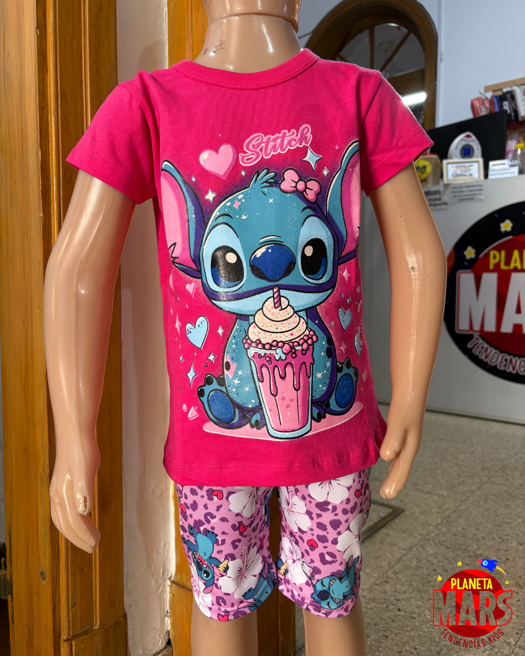 Remera premium Stitch (batido) fucsia