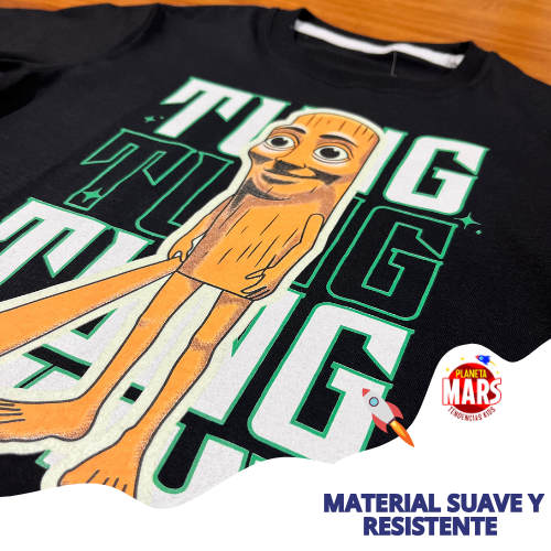 Hecha 100% de algodón suave y transpirable, esta remera de Italian Brainrot es ideal para que tu peque (o el fan número uno de los memes) juegue, se divierta y lleve el chiste a donde vaya. Y cuando se apagan las luces… ¡boom! El diseño brilla en la oscuridad, porque la risa también ilumina. 😂🌙