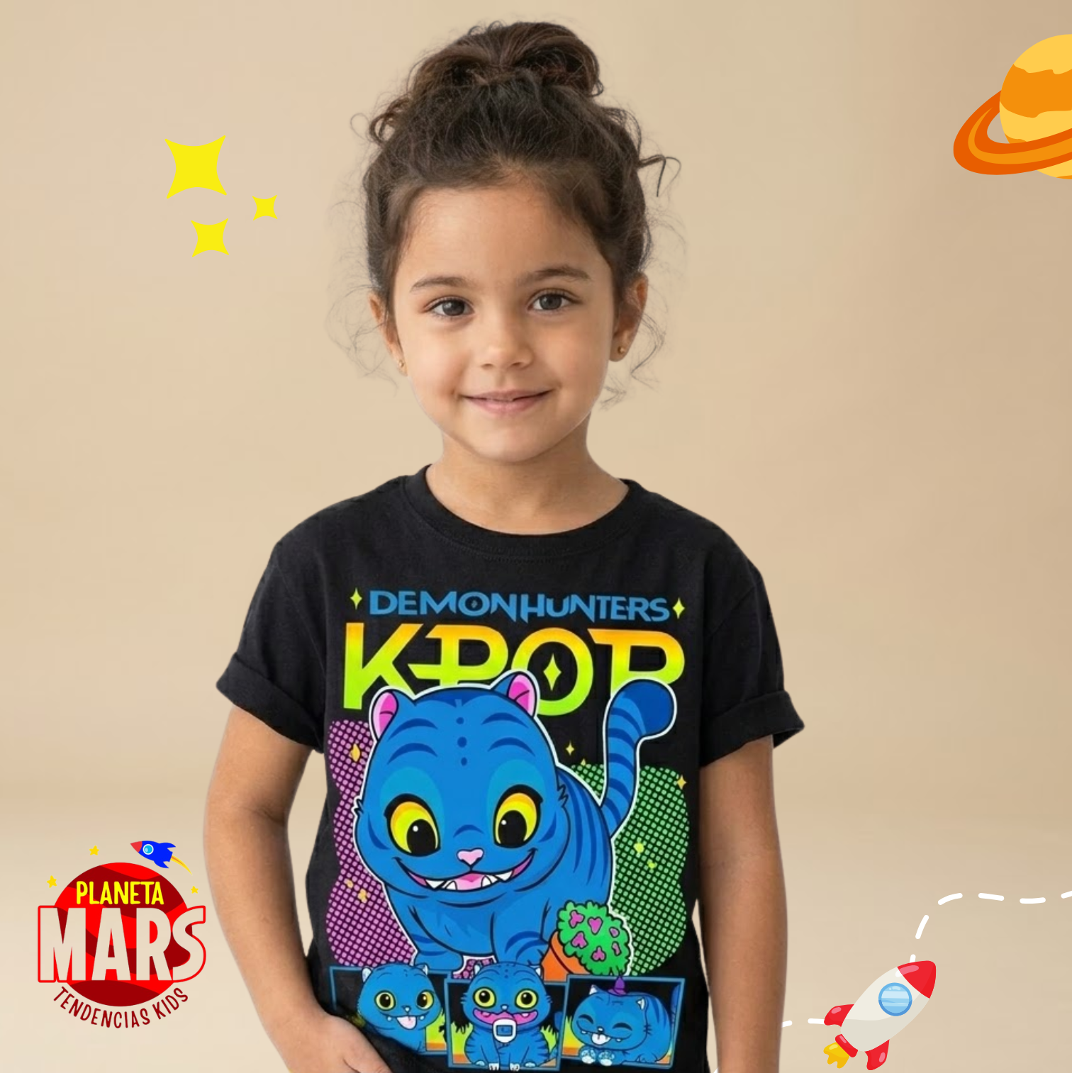Camiseta de algodón de Las Guerreras K-pop con estampa que brilla en la oscuridad ✨🌙