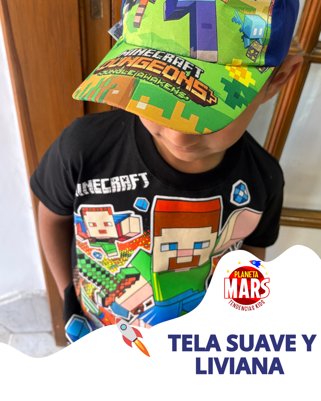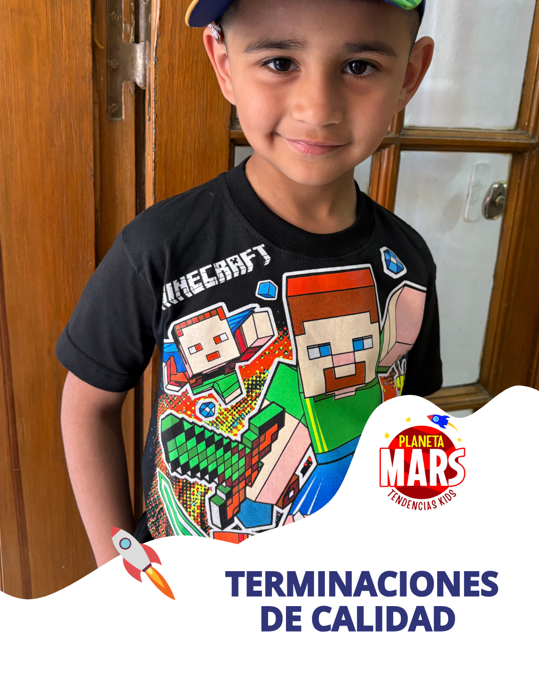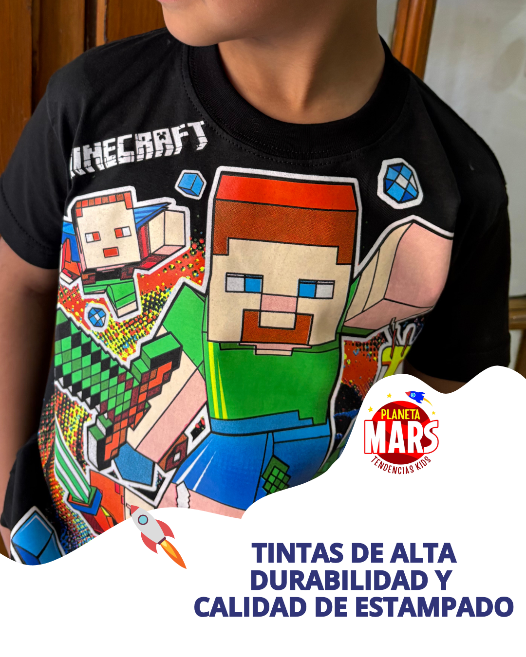 La Remera Minecraft es perfecta para los pequeños fans del universo pixelado. Con su diseño divertido y colorido, se convierte en una prenda infaltable para jugar, salir o disfrutar del día con estilo gamer