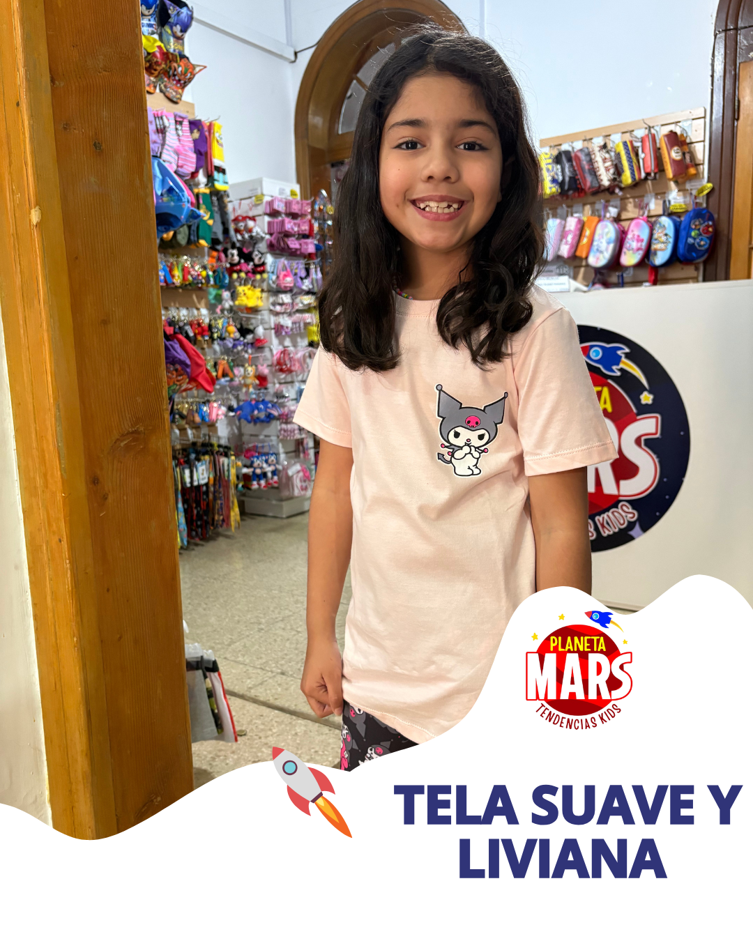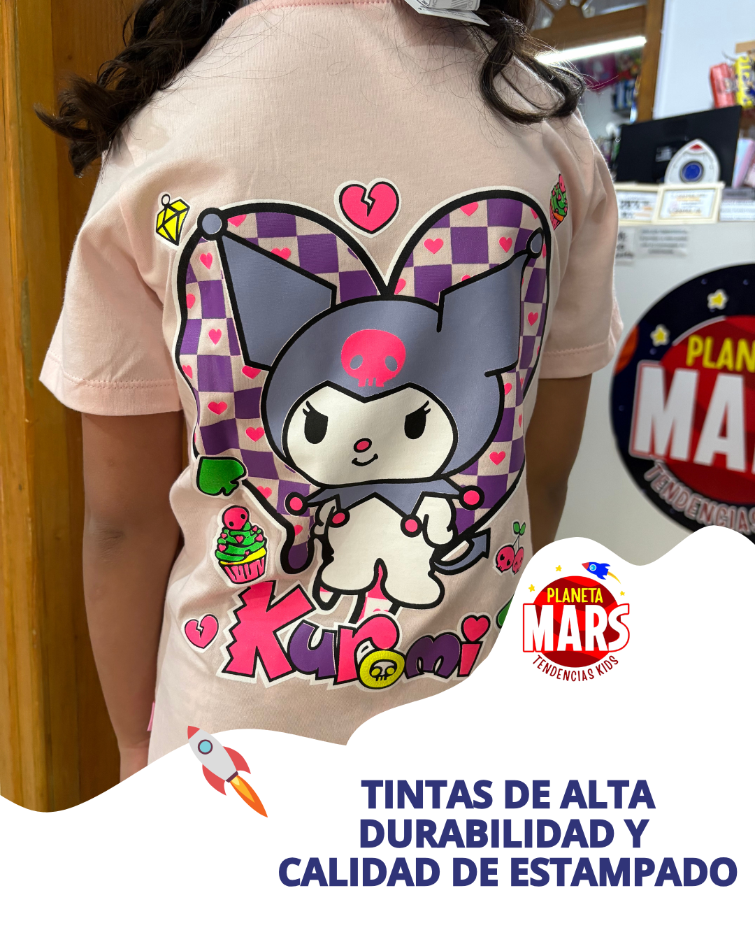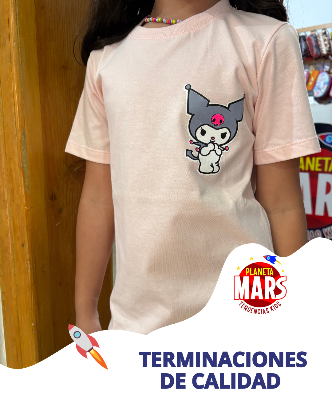 Con esta remera, tu peque llevará toda la actitud y el encanto único de Kuromi en un diseño súper cómodo y lleno de personalidad. Perfecta para jugar, salir y mostrar ese toque travieso que solo Kuromi sabe dar. ¡Diversión y estilo sin perder ni un poco de onda!